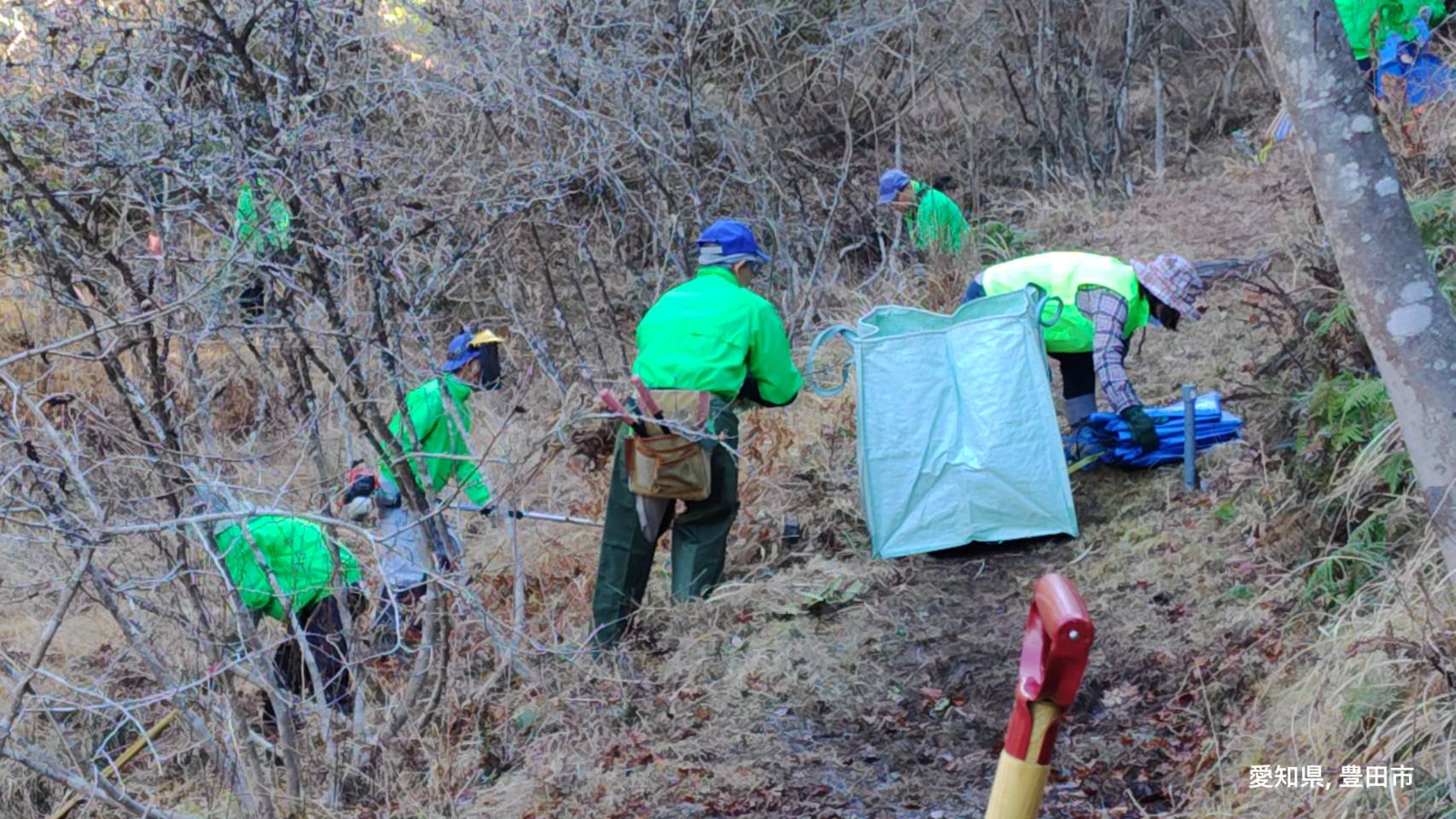 この日は快晴の中での湿地保全作業となりました。